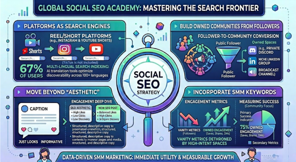 To stay competitive, your SMM marketing strategy must treat every post like a searchable asset. This means moving beyond “aesthetic” captions toward “informative” ones. Incorporating SMM marketing keywords into your video scripts is now vital, as AI-driven accessibility tools index spoken word content to categorize your videos. Your goal should be to answer specific user queries directly within your social content, making your SMM marketing efforts a source of immediate utility.