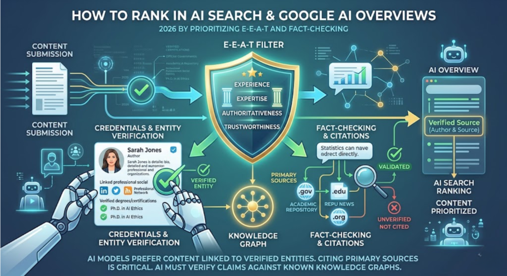 In 2026, AI search engines are hyper-sensitive to misinformation. Google’s algorithm updates have placed a premium on Experience, Expertise, Authoritativeness, and Trustworthiness (E-E-A-T). If you want to know how to rank in AI search & Google AI overviews, start with your credentials.