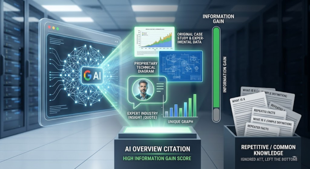 To master how to rank in AI search & Google AI overviews, we must first understand how these systems “think.” Unlike traditional algorithms that matched keywords to phrases, AI search engines use Large Language Models (LLMs) to synthesize information. They look for “Information Gain”—unique data or perspectives that aren’t found in a dozen other articles.