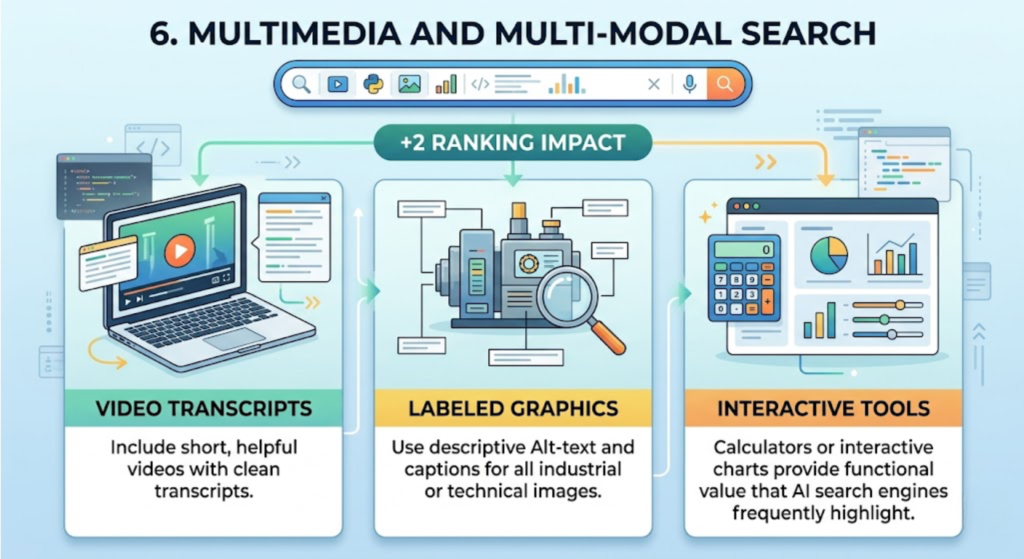 AI search is no longer text-only. Google’s Gemini and other models are multi-modal, meaning they process video, images, and audio simultaneously. To truly master how to rank in AI search & Google AI overviews, you must incorporate diverse media.
